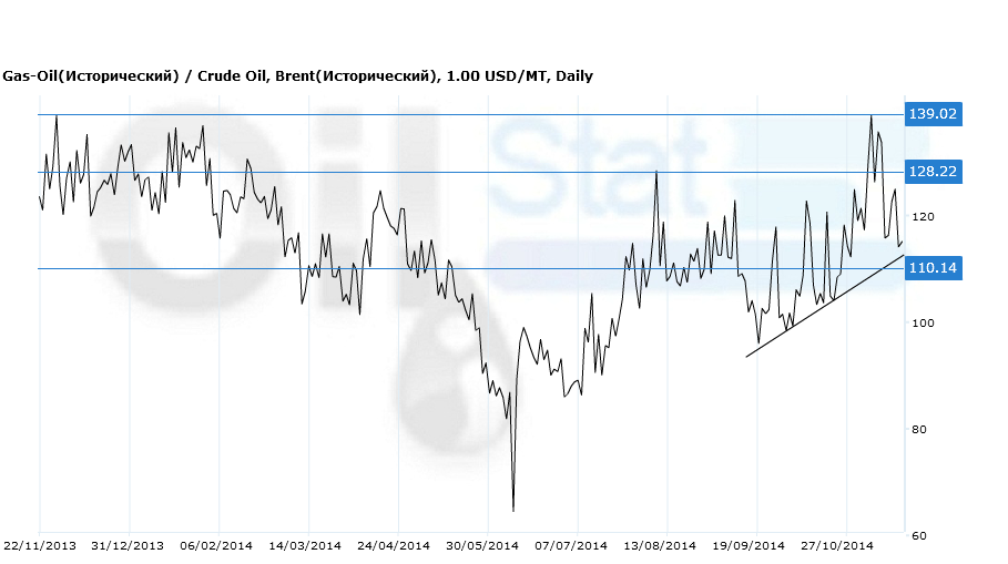 Спрэд: Gas-Oil(ICE)/Brent (ICE).