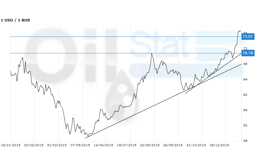 Сценарий роста:ну вот, 75.00 уже ближайшая поддержка. Если вбивание нефтяных цен в абсолютный ноль продолжиться, то будет и 85.00. В остальных случаях отсюда рынок имеет шансы на коррекцию. Но очень сложно представить тех, кто сейчас продает доллары. Экспортеры? Не исключено. Возврат к 70.00 возможен, там и новые точки для покупок появятся.