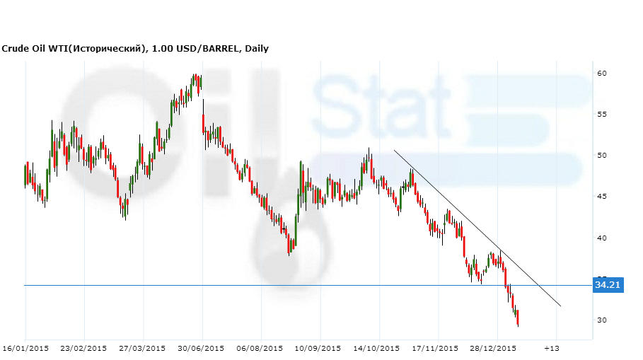 Сценарий падения:если бы мы были на рынке валют или акций, то данное движение имело бы потенциал для дальнейшего падения. Здесь же рынок будет искать уровень, после которого избыток нефти приведет к закрытию предприятий и падению добычи. Некоторые государства могут зайти очень далеко, например, не сбросят добычу и при 10 долларах. Это и пугает.