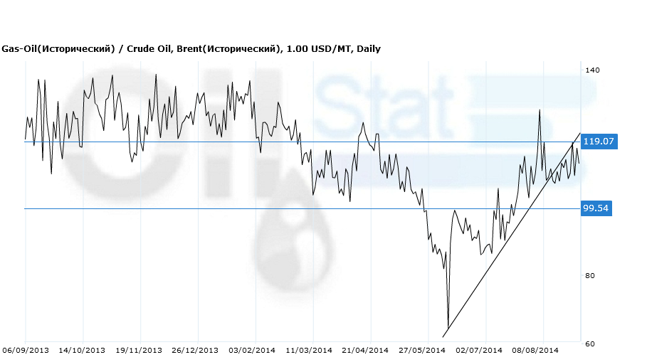 Спрэд: Gas-Oil(ICE)/Brent (ICE).