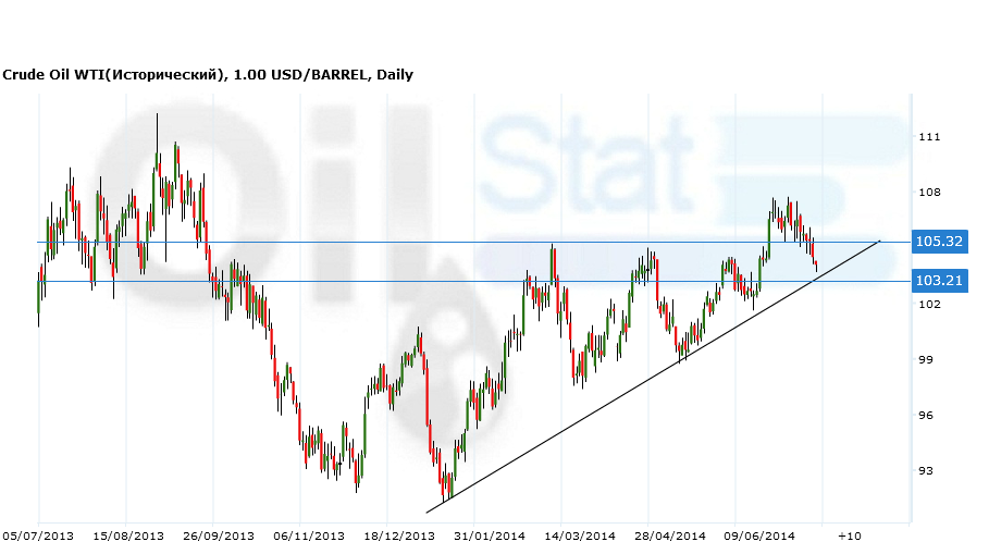 Сценарий роста: плохо. Цены пока держаться выше линии поддержки, но оптимизм группы вечно восходящей на вершину тает на глазах. Упав ниже 103.00, цены рискуют сорваться в пропасть. Поэтому, упрямимся сейчас, но не глубже чем до 102.40.