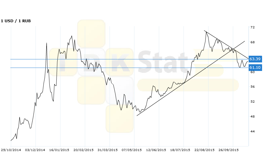 Сценарий роста:нечто похожее на двойное дно с угрозой взятия 63.40, что может привести к росту до 68.00. Если нефть не очухается, так и будет. А там у нас и новый год и старая песня о главном – рост цен, инфляция и все по новой. Что это за рыночная экономика по Гайдару уже 20 лет. Не понятно.