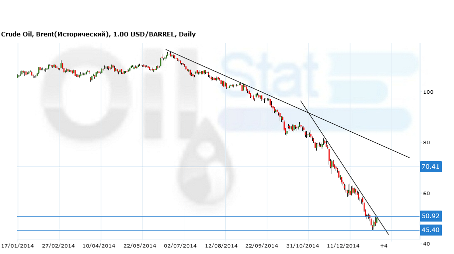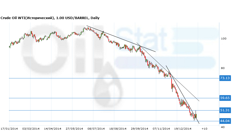Сценарий падения:если понедельник откроется ниже 50.90, то с крохотным стопом на 51.10 можно пробовать продать. Если стоп будет уничтожен в результате роста, отложим разговоры о продажах до подъема к 70.00. Экстремально низкая цена продолжает находиться в районе 31.00. Напрямую рекомендовать продажу не можем.