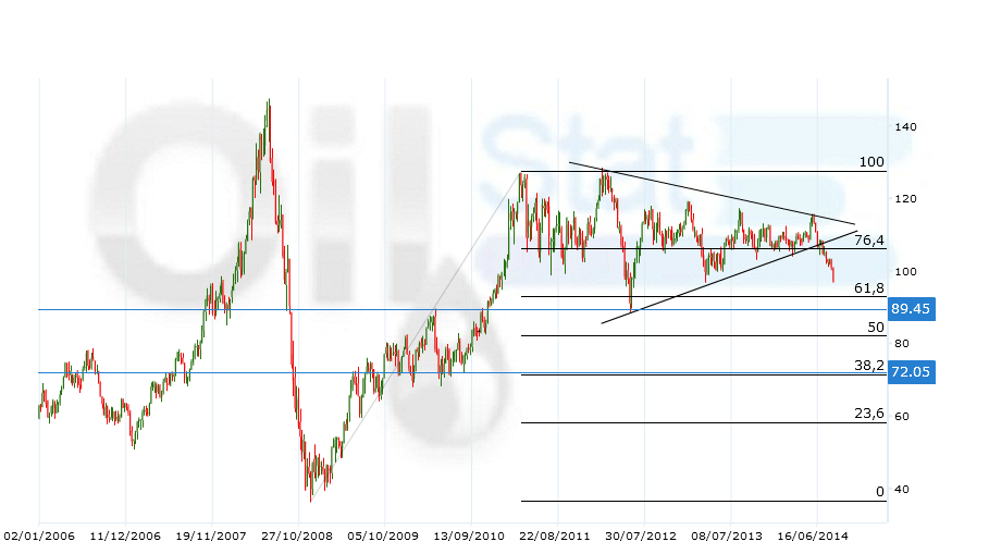 Сценарий падения: наша настойчивость с продажей от 120.00 дает свои плоды. Дальнейший спуск упирается в 100.00, но здесь, заняв заранее выгодную позицию, можно просто подождать и посмотреть чем дело кончится, не забыв поджать стоп-ордер, конечно.