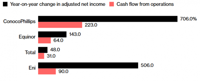 Рис. 1 Доходы крупных нефтяных компаний стремительно растут благодаря высоким ценам на нефть