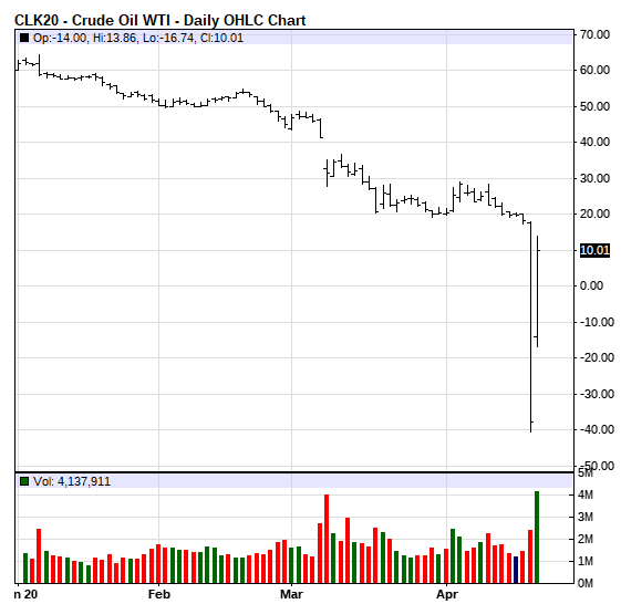К тому моменту фондовый рынок пережил множество «черных дней», и вот пришло время нефти ознаменовать один из них. В понедельник 20 апреля майский контракт WTI рухнул до минус 40 долларов.