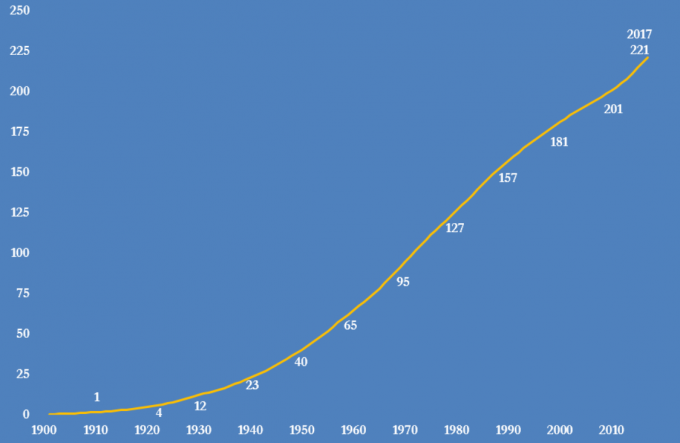 Рис. 2 Совокупный показатель производства нефти в США с 1900 года, млрд. баррелей