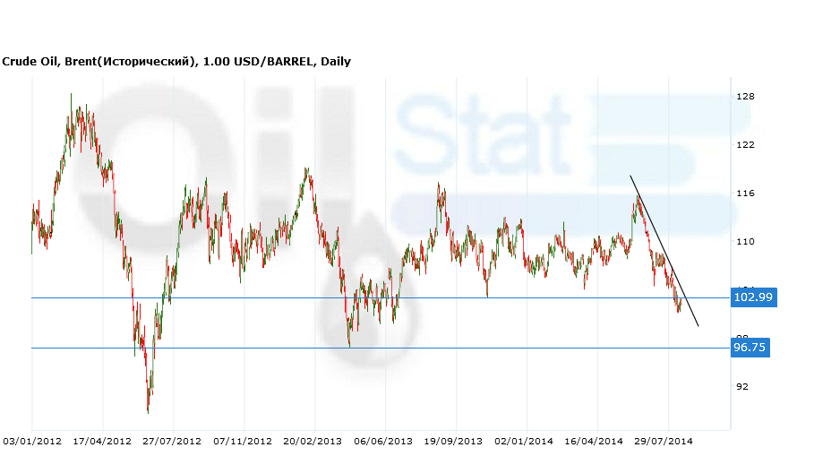 Октябрьский фьючерс на нефть марки Brent на бирже ICE в Лондоне уменьшился на $0,34 (-0,3%) и составил $102,29 за баррель.