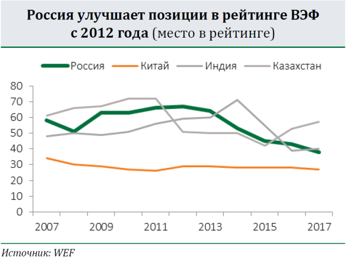 Россия поднялась с 43 до 38 места в рейтинге ВЭФ