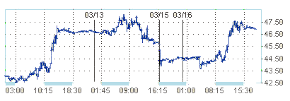 По итогам торговой сессии 16 марта на Нью-Йоркской товарной бирже Nymex цена апрельского фьючерса Light Sweet выросла на 1.10$, или на 2.4%, и закрылась на отметке 47.35$ за баррель. С начала года нефть подорожала на 6.2%.
