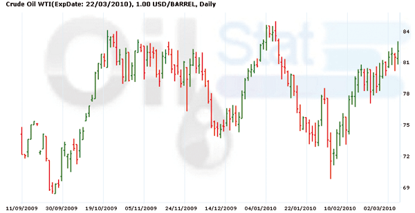 На 16:00 апрельский контакт Light Sweet (WTI) подешевел на $0,07, его стоимость составила $82,02. Апрельский контакт нефти Brent потерял в цене $0,16 и стоил $80,32.