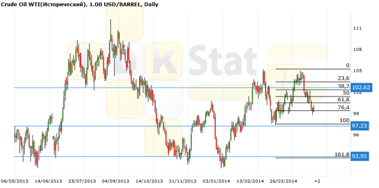Поддержка – 97.23. Сопротивление — 102.62.