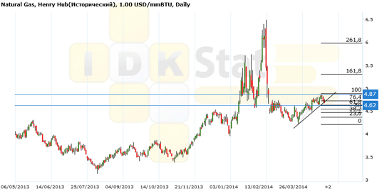 Сценарий падения: как мы отмечали ранее, пробой поддержки не даст нам хороших перспектив, так как количество мелких уровней, через которые придется продираться внутри дня — велико. Да, последний импульс вверх далек по форме от классического, но до того пока цены не упадут ниже 4.62 рассматривать продажи мы, однозначно, не рекомендуем.