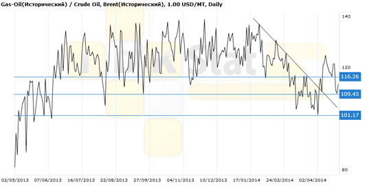 Спрэд: Gas-Oil(ICE)/Brent (ICE).