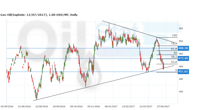 Сценарий роста: рассматриваем июльский фьючерс с датой экспирации 12 июля. Писали мы так: «рассмотреть возможности входа в лонг при касании 462.00. Кто рассмотрел, ничего страшного случиться было не должно. Мы не выросли, но и не упали. Кто не закрылся по стопу, или кто просто оставил позиции на следующую неделю, закройте позицию при условии, что цены уйдут ниже минимума четверга. Кто не верил в покупку ранее – продолжайте это делать, не покупайте. Отскок возможен. Но вряд ли рынок поднимется выше 480.00.