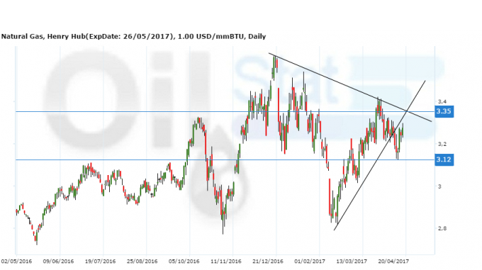 Сценарий роста: рассматриваем июньский фьючерс с датой экспирации 26 мая. Можем свалиться к 3.00. Нам очень нужна эта отметка, так как от неё купить будет намного вернее. Покупать сейчас преждевременно. Тактически, на мелких интервалах можно поискать возможности для входа в лонг от района 3.20, так как за последние пять дней рынок нарисовал нечто похожее на маленький пятиволновой импульс вверх, которому как раз сейчас не помешает коррекция к 3.20, после чего движение вверх будет продолжено.