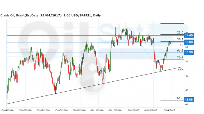 Поддержка – 56.50 (56.00). Сопротивление – 57.55.
