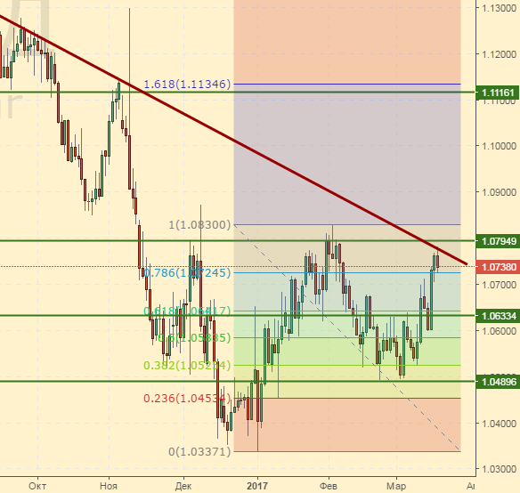Сценарий роста: тут у нас все по расписанию. 1.0794 – стал сопротивлением, как и предполагалось. Более того, забрались мы достаточно высоко для того чтобы рассчитывать на ход к 1.1100. Поэтому тот, кто купил от 1.0490 – тот стоит. Желающие могут присоединиться к движению вверх в случае падения к 1.0650.