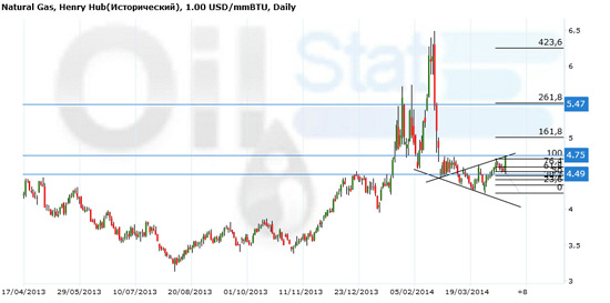 Сценарий роста: рынок за прошлую неделю успел избавиться от перекупленности и даже показал свои намерения по продолжению роста. Цели у такого движения находятся в районе 5.45, более дальняя — на 6.25. Если исходить из теории вероятности, то восходящая линяя сопротивления скорее всего будет взята нежели выстоит.