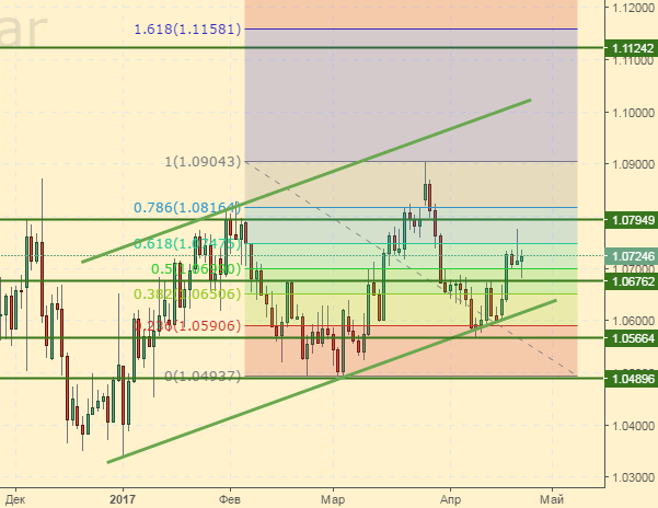 Сценарий роста: во-о-от, вот не зря мы там у 1.0570 ковырялись. Все вернулось на круги своя. Во Франции выборы. Марина (Марин Ле Пен) пройдет во второй круг похоже. Шансы есть. Отрыв небольшой от третьего кандидата всего 2% и для избирательных систем некоторых стран 2% это вообще не вопрос. Значит ЕВРО несколько подвиснет, но слухи об отмене «брексит» куда сильнее поддержат евровалюту, чем разочаруют всякие националистки Ле Пен. Но, знаете, французов легко понять. Ведь либерализм довел страну до того, что Париж стал тем городом, где когда-то жили французы. Понимаете? Все очень хорошо видно по цвету кожи прохожих на улицах и в метро. Все видать прям по масти. Ах, простите, нежные вы мои, если таковые есть.