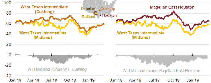 Цены на нефть из региона Permian с начала года возросли. Это обусловлено увеличением пропускной способности нефтепроводов. С середины 2018 года до текущего момента в регионе наблюдалась существенная нехватка пропускной способности транспортной инфраструктуры. Из-за этого производители вынуждены были использовать более дорогие способы доставки нефти. В сентябре 2018 года разница между ценами на нефть West Texas Intermediate-Midland (WTI Midland), ценами на WTI Cushing и ценами на Magellan East Houston начала сокращаться.