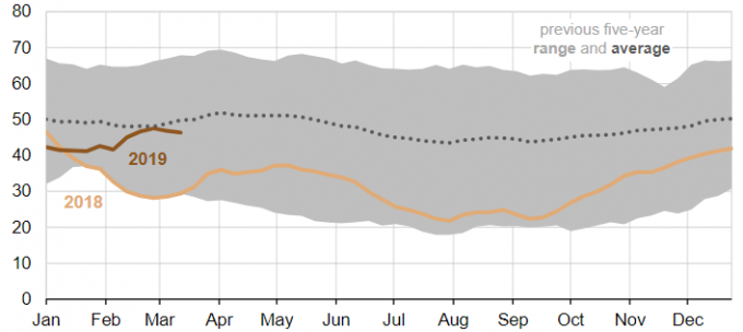 С начала февраля по 15 марта текущего года объемы запасов нефти в Cushing возросли на 4 млн. баррелей. Похожая ситуация наблюдалась в прошлом октябре.