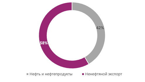 Рисунок 4. Снижение волатильности нефти и рубля улучшит условия для 58% российского экспорта (доли по итогам 2016 года)