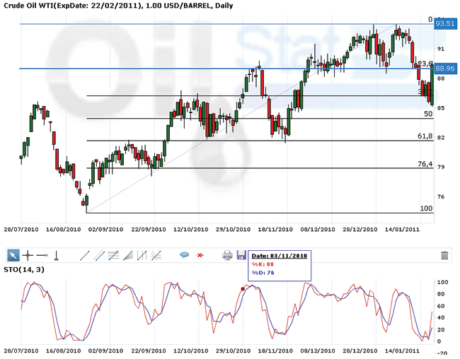 Однако в целом за минувшую торговую неделю (24-28 января) цены на нефтяные фьючерсы существенно не изменились, поскольку три торговых дня из пяти нефть на биржах дешевела в основном из-за фиксации прибыли и ликвидации длинных позиций. Так, официальная цена нефти WTI повысилась за неделю на $0,23 цента, или на 0,3%, а баррель нефти Brent стал дороже на $1,82, или на 1,9%.