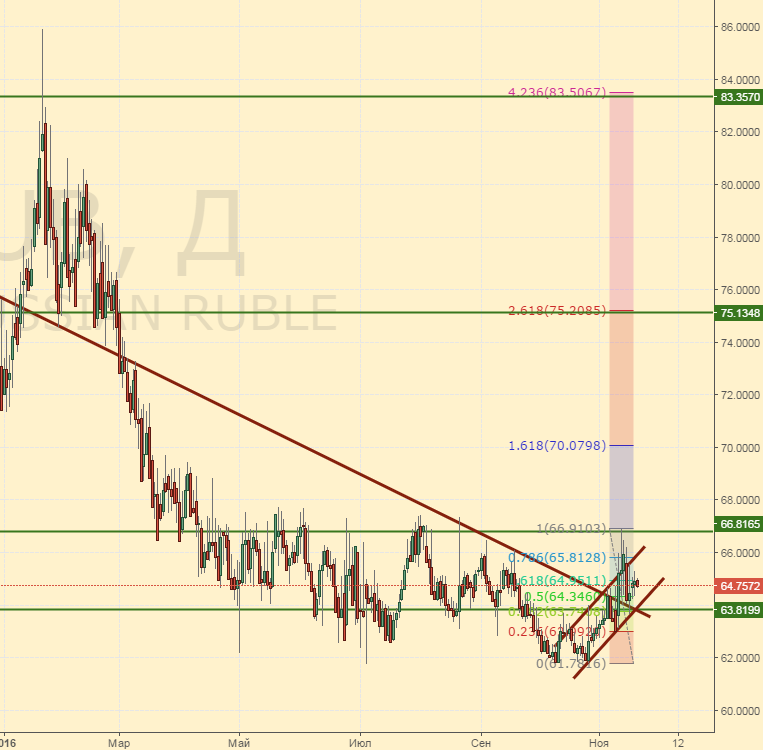 Сценарий роста:нет сюрприза в том, что рынок спроецировал развал Еврозоны после победы Трампа. Сюрприз в том, что мы прошили 1.0600. Из серьезного дальше только паритет. По технике же мы видим 1.0270. Тем не менее, при возврате выше 1.0600 возможен ход на 1.1000. «Швейцарцы», то есть часовщики, могут пробовать покупать в расчете на подъем. Рисковые ребята, то есть валютчики махровые, покупают сейчас. Стоп: 1.0573. Если же падение продолжиться безоткатно, то мы можем уйти и к 1.0270, а там уже один известный аналитик наконец сможет приготовить ножницы чтобы побриться наконец, так как 1.0000 уже будет в зоне досягаемости.