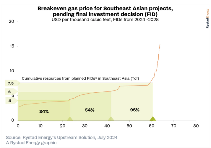 Рис 3. Безубыточная цена на газ для проектов Юго-Восточной Азии до принятия ОИР Источник: Rystad Energy