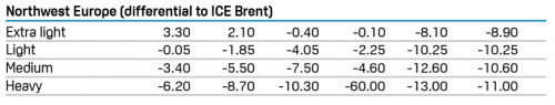 Рис. 2 Официальная продажная цена, Северо-западная Европа (дифференциал к ICE Brent)