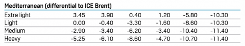 Рис. 3 Официальная продажная цена, Средиземноморье (дифференциал к ICE Brent)