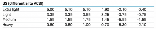 Рис. 4 Официальная продажная цена, США (дифференциал к ACSI)