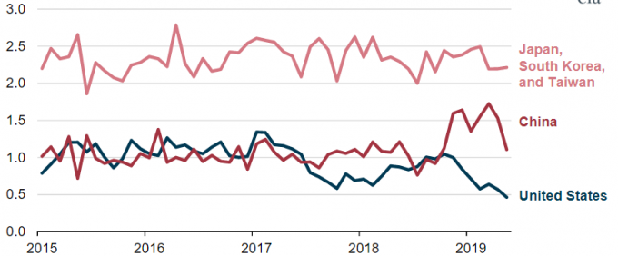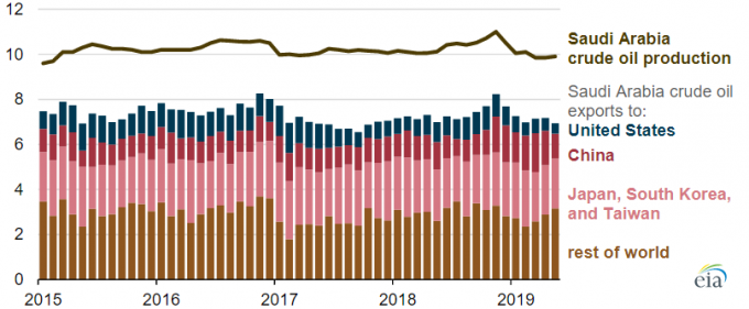 В 2019 году объемы поставок саудовской нефти возросли в Китае, Японии и Тайване, а в Южной Корее — сократились.