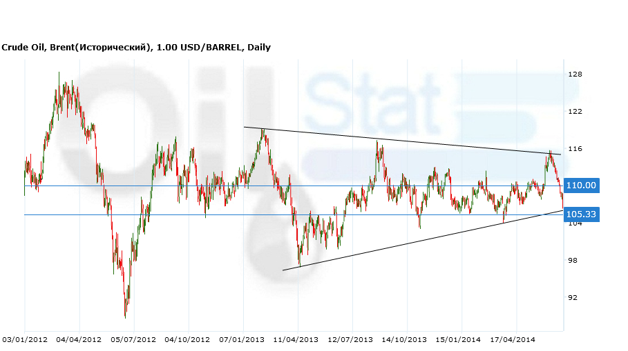 Августовский фьючерс на нефть марки Brent на бирже ICE в Лондоне подешевел на $2,01 (-1,8%) и составил $106,66 за баррель.