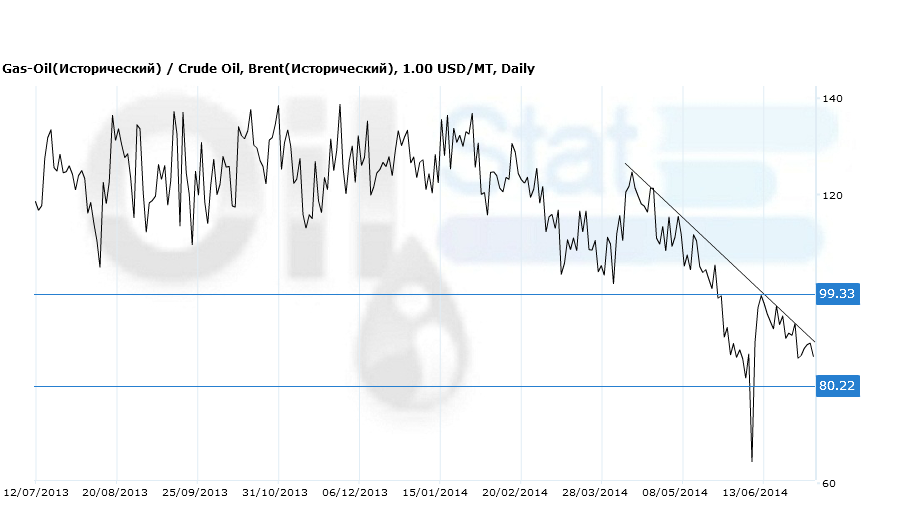 Спрэд: Gas-Oil(ICE)/Brent (ICE).