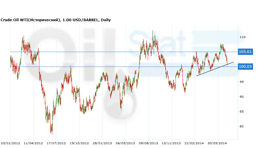 По итогам торгов 11 июля котировки фьючерсов на нефть марки WTI на август на Нью-Йоркской товарной бирже NYMEX упали на $2,10 (-2%) — до $100,83.