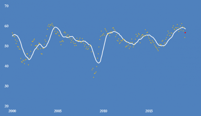 Рис. 4 Индекс PMI в США, 2000 — 2019 годы