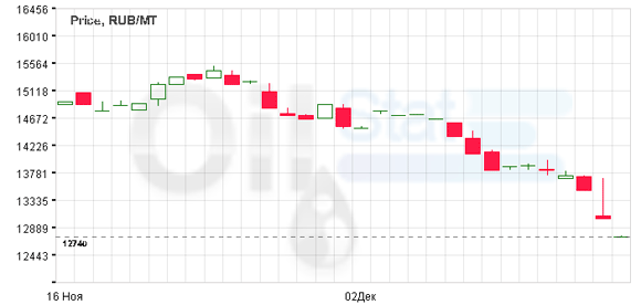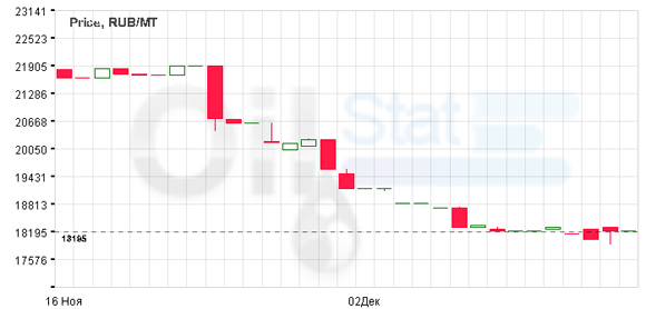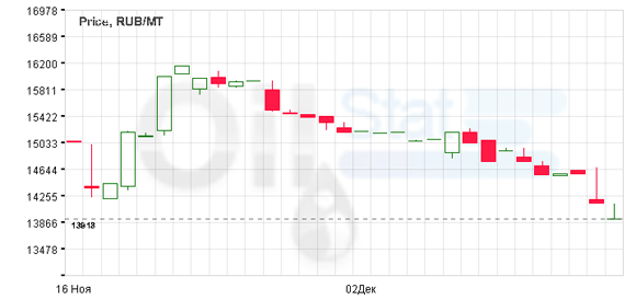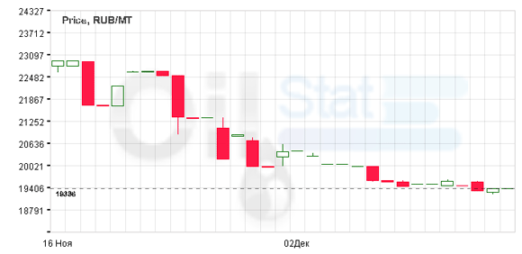 16 декабря по данным OilStat цена ДТЛ снизилась до 13 916 руб/т.