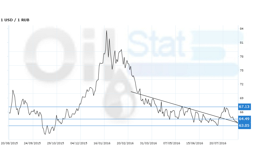 Сценарий падения:продолжаем не видеть рубль крепче 63 рублей, однако если нефть продолжит фонтанировать, и пойдет на север к 60.00, то и рубль отправится на юг к 60.00, так сказать с другой стороны, графика. Пробой отметки 60.00 при дефицитном бюджете и малом сальдо платежного баланса не нужен никому.