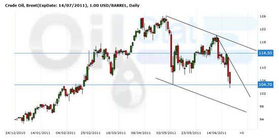 Технический анализ рынка нефти марки Brent с 27.06.2011 по 01.07.2011.
