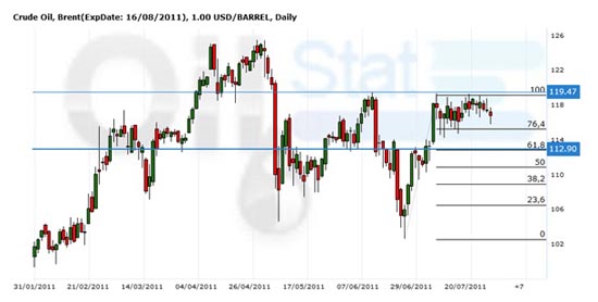 Технический анализ рынка нефти марки Brent с 01.08.2011 по 05.08.2011.