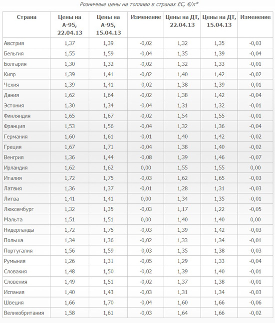 Наиболее ощутимое снижение отмечено в Венгрии и Румынии. В сегменте дизельного топлива прежняя стоимость сохранилась только в Ирландии. Самое большое удешевление ДТ зафиксировано в Венгрии, Швеции и Люксембурге.