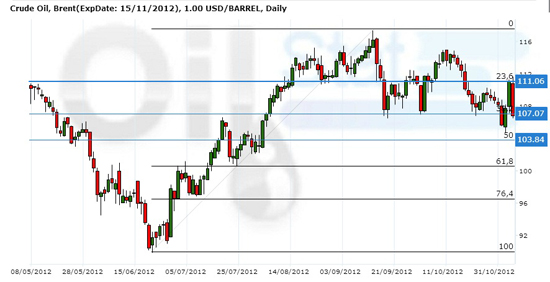Нефть перед открытием торгов четверга демонстрировала коррекционное движение вверх после резкого снижения накануне. Котировки нефтяных фьючерсов резко снизились вслед за большинством рисковых активов после обнародования итогов президентских выборов в США – теперь на первый план вновь вышли опасения по поводу низкого спроса и избыточного предложения на рынке нефти. Дополнительное давление на котировки оказал доклад Минэнерго США. В результате по итогам торгов 7 ноября Brent подешевел на -3,8%, WTI — на 4,8%. Котировки продемонстрировали самые внушительные за 2012 год потери в рамках одной сессии в процентном выражении, поэтому на четверг складываются хорошие условия для спекулятивной покупки на отскоке вверх.