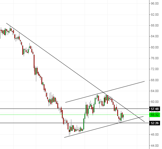Продажа:нет.Кто в позиции, переносит стоп на 62.60. Цель: 52.00.