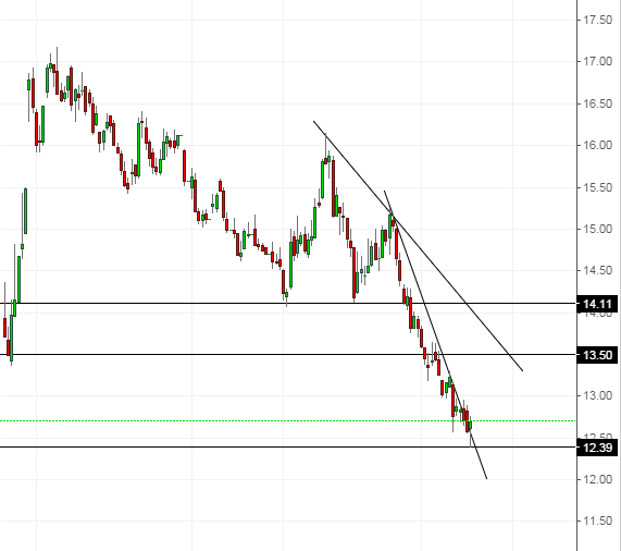 Поддержка– 12.39. Сопротивление – 13.50.Сценарий роста:сахар достаточно потерял в своей стоимости для того чтобы мы могли рассчитывать на отскок. Всплеск от уровня 12.39 обращает на себя внимание так как пробита агрессивная линия сопротивления. Первоначальная цель движения находится на 13.50. Более дальняя на 14.11.