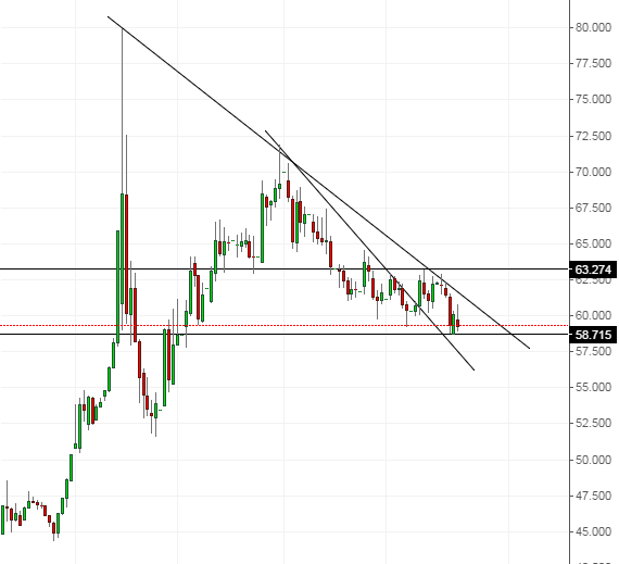 Продажа:сейчас. Стоп: 58.30. Цель: 32.00. Кто в позиции держит стоп на 58.30.