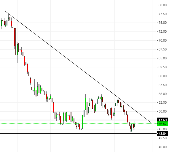 Продажа: при касании 47.00. Стоп: 49.00. Цель: 32.00.