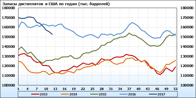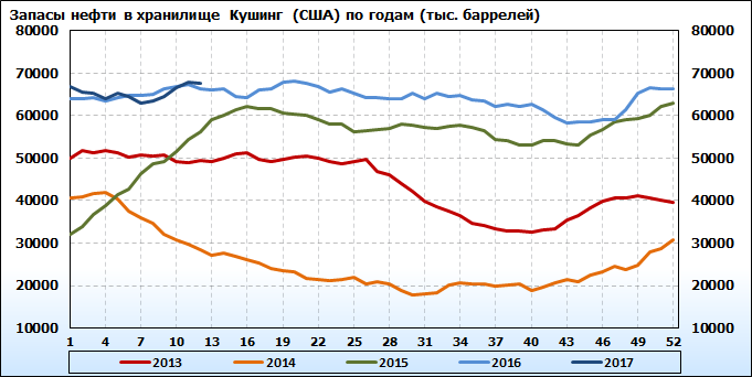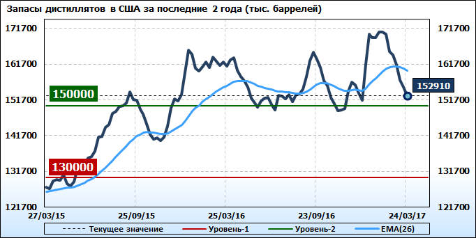 Запасы нефти и нефтепродуктов в США. Данные на 29.03.2017. Подробно