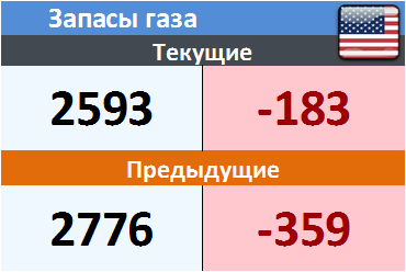По сообщению статистической службы EIA запасы газа в США на 18.01.2018 составили 2593 млрд. куб. футов. За неделю запасы природного газа в хранилищах упали на 183 млрд. куб. футов. По итогам недели падение запасов газа составило -6.59 процентов.